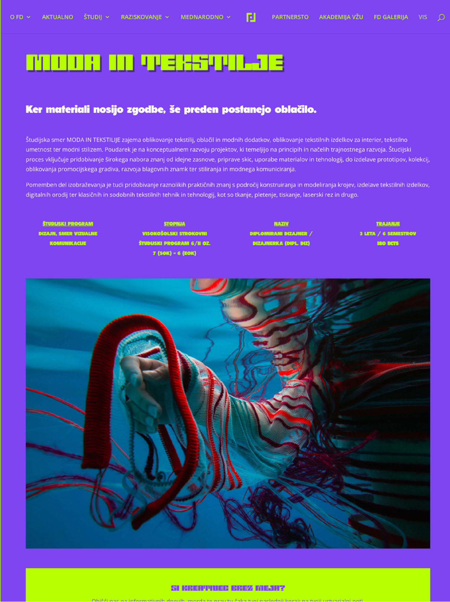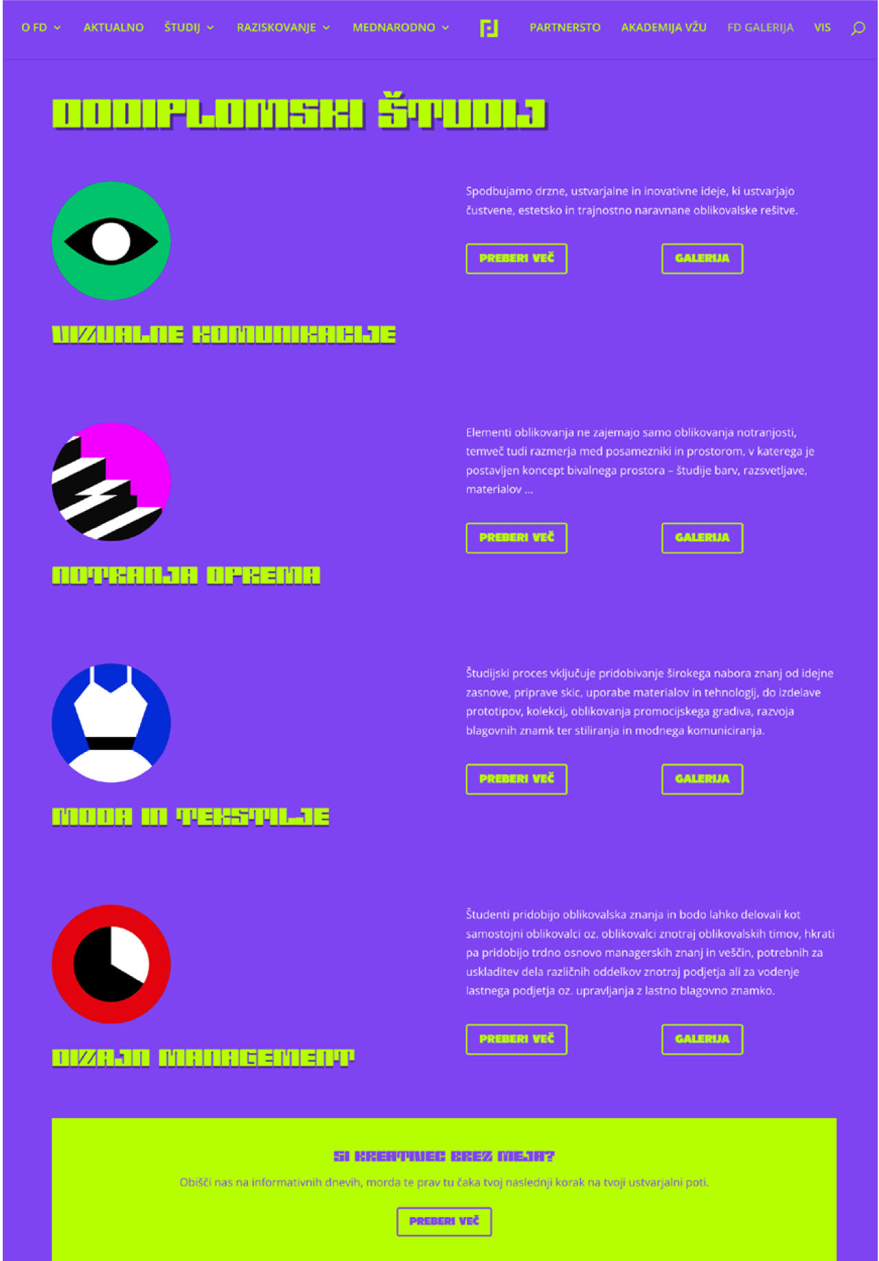 Student project, redesigning offical website of Faculty of Design, based on our own colour scheme and visualisaton.
